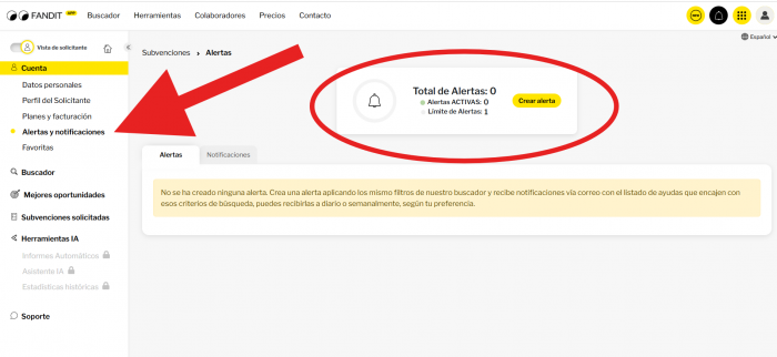 - Entrar en el apartado Alertas